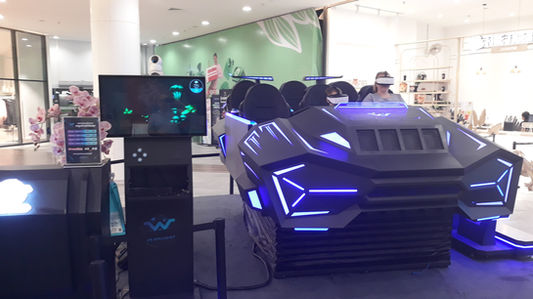 The spaceship accommodates up to six people at a time. Its hydraulic suspension simulates every drop, twist and turn you see on your VR headset.